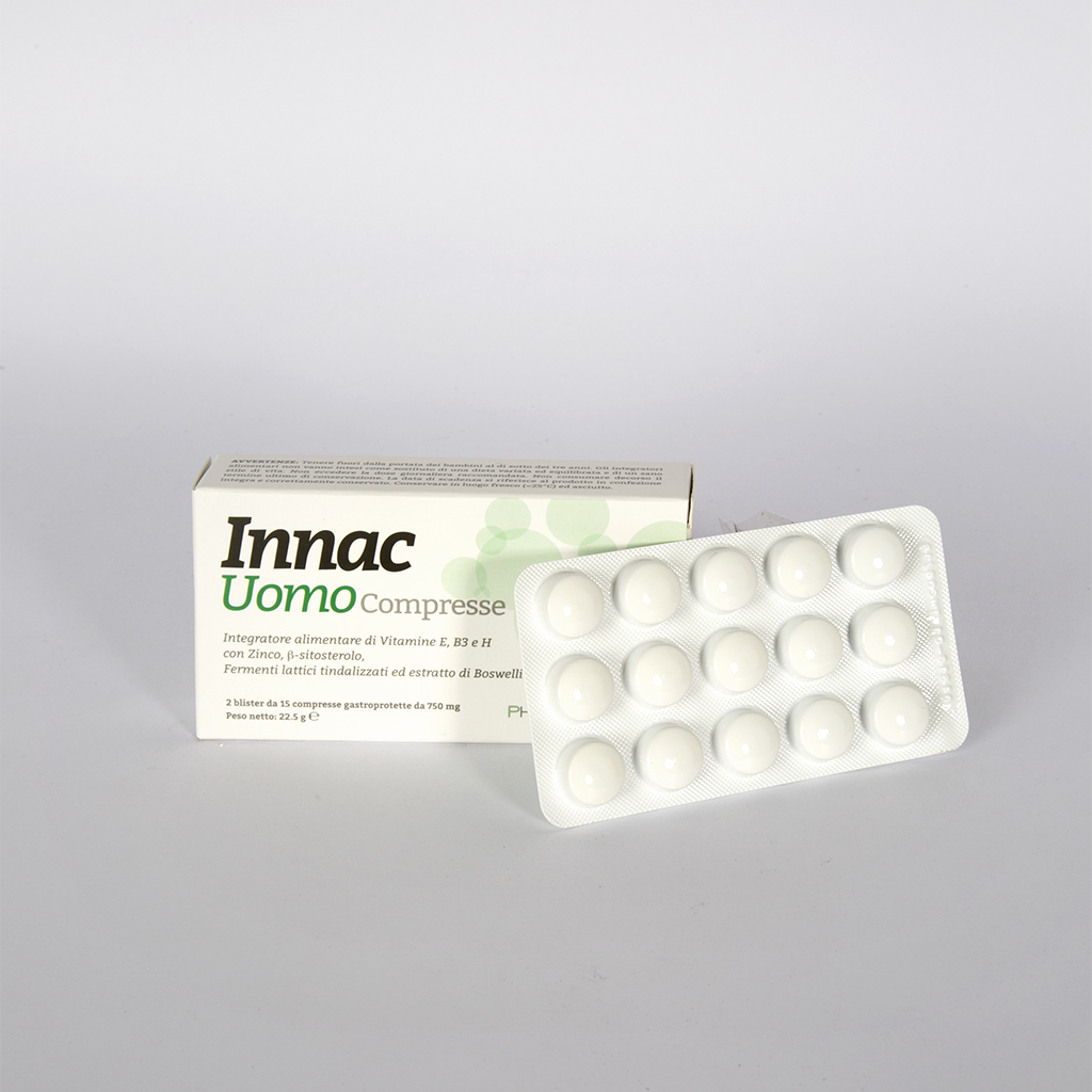 Lactic acid bacteria, ß-sitosterol, Boswellia serrata dry extract 65%, vitamin B3, vitamin E, Zinc and vitamin H (biotin).